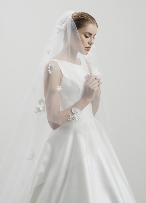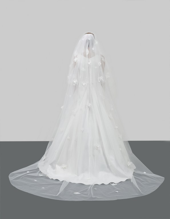 3 boyutlu çiçek ve apliklerle bezeli katedral boy duvak